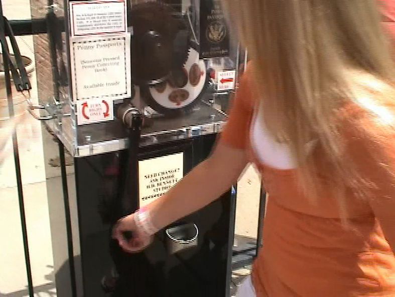 No Brasil, diferentemente de alguns outros países, não é permitido prensar a moeda local para transformar em suvenir. Desta forma, fichas metálicas lisas são usadas como base. Localize nossas máquinas. clique aqui Gire a manivela até que a seta se posicione com a imagem.